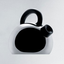 An elegantly simple water kettle by Stefano Giovannoni for Alessi. Mirror-polished finish with magnetic stainless steel bottom and handle and whistle in polyamide. Capacity: 1qt 19oz. Made in Italy.