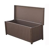 C39548F-Brown Color: Brown Features: -Perfect for storage of equipment, cleaning supplies, etc. or for extra outdoor storage.-Made from recycled plastic lumber.-Impervious to sunlight, water and most chemicals.-Doubles as a bench with flat seat, serves as a great space saver. Color/Finish: -Six color options. Dimensions: -Dimensions: 18.5'' H x 48'' W x 18.5'' D. High-density polyethylene made from recycled plastic Several color options 1-year warranty Thick-rimmed top Can be used for extra seating
