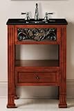 Our traditionally designed Maple Vanity features a rich maple finish with intricately, detailed iron accents and a black granite top. The vanity also includes an undermount sink and a drawer for additional storage. Available in a rich maple finish. Made of quality materials for lasting durability. Single drawer cabinet design. Actual size is 35Hx25Wx22D 35"H x 25"W x 22"D.